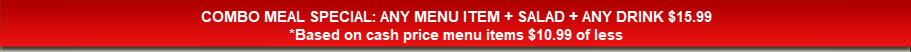| Small Salad (with meal only) Romaine lettuce, cucumber, tomato, choice of dressing | $4.99 | $5.49 |